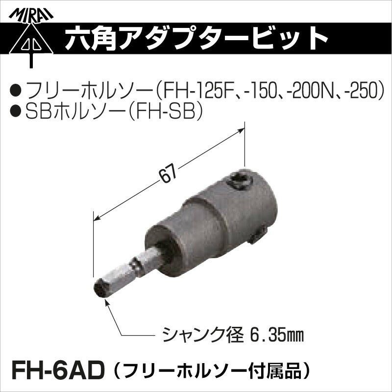 【即配】未来工業 FH-6AD 六角アダプタービット フリーホルソー付属品