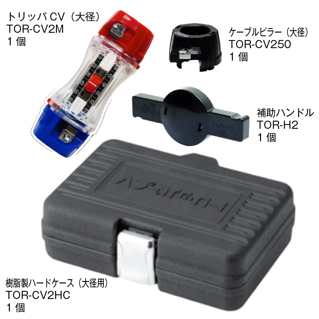 | セット内容 | トリッパCV(大径)TOR-CV2M × 1個 ケーブルピラー(大径)TOR-CV250 × 1個 補助ハンドル TOR-H2 × 1個 樹脂製ハードケース(大径用)TOR-CV2HC × 1個 |