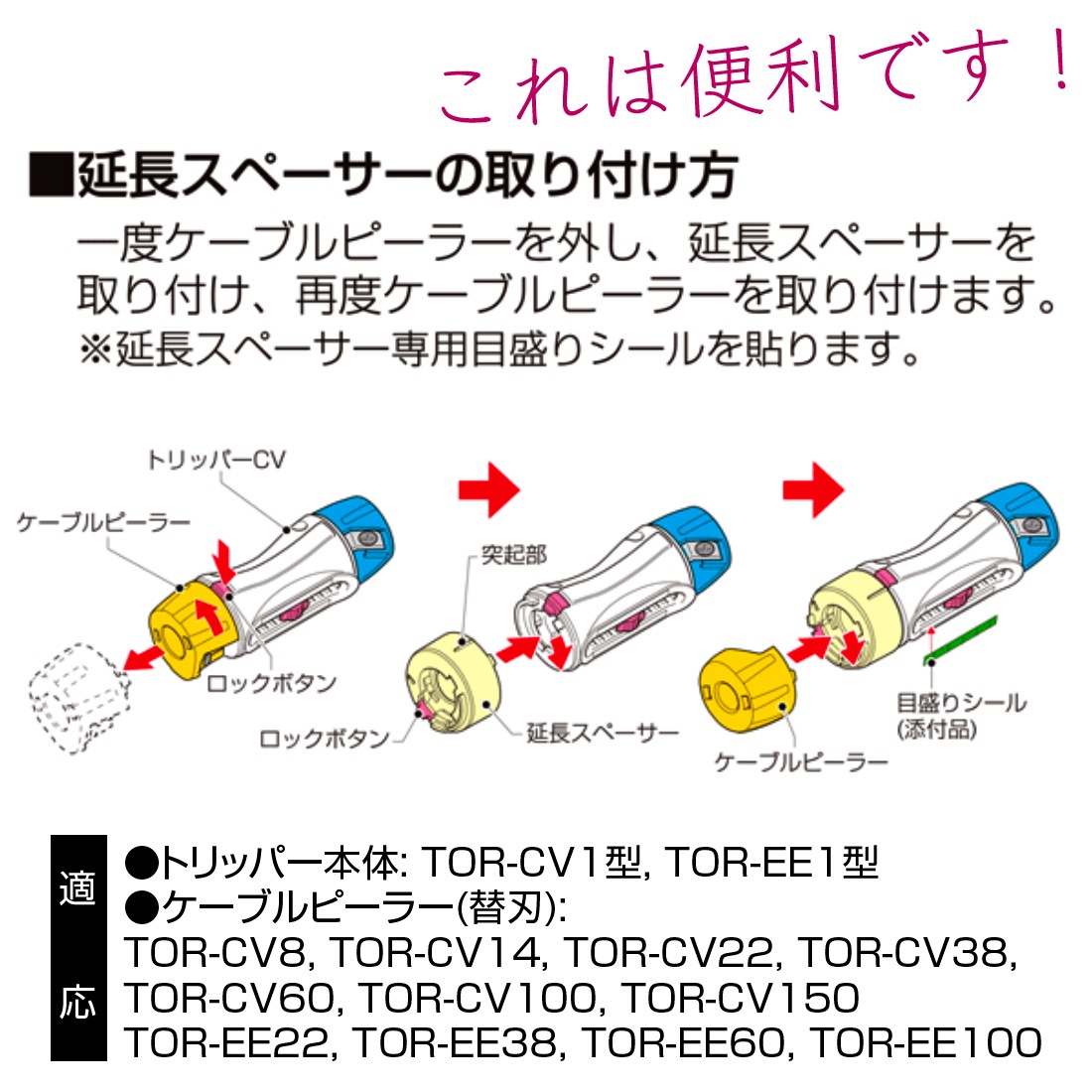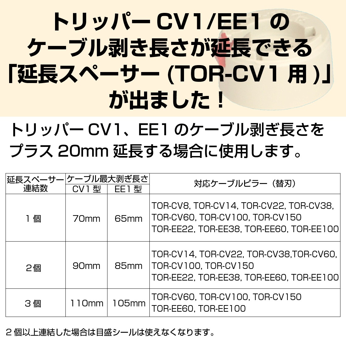トリッパーCVのケーブル剥き長さをプラス20mmまで延長する場合に使用します。