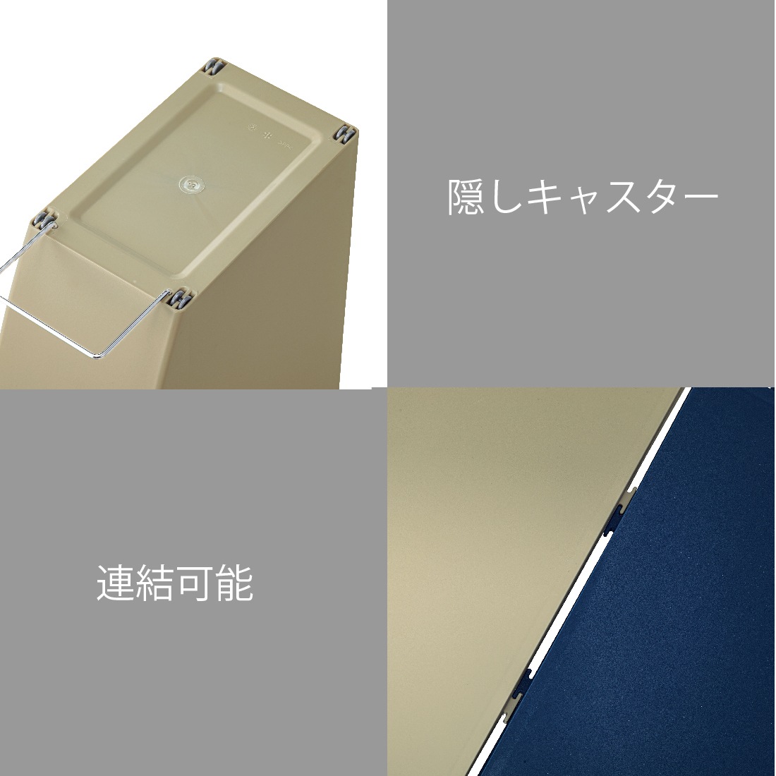 横に並べたり、縦に積んだり、生活スタイルにあわせて組み合わせできるスリムコンテナ。