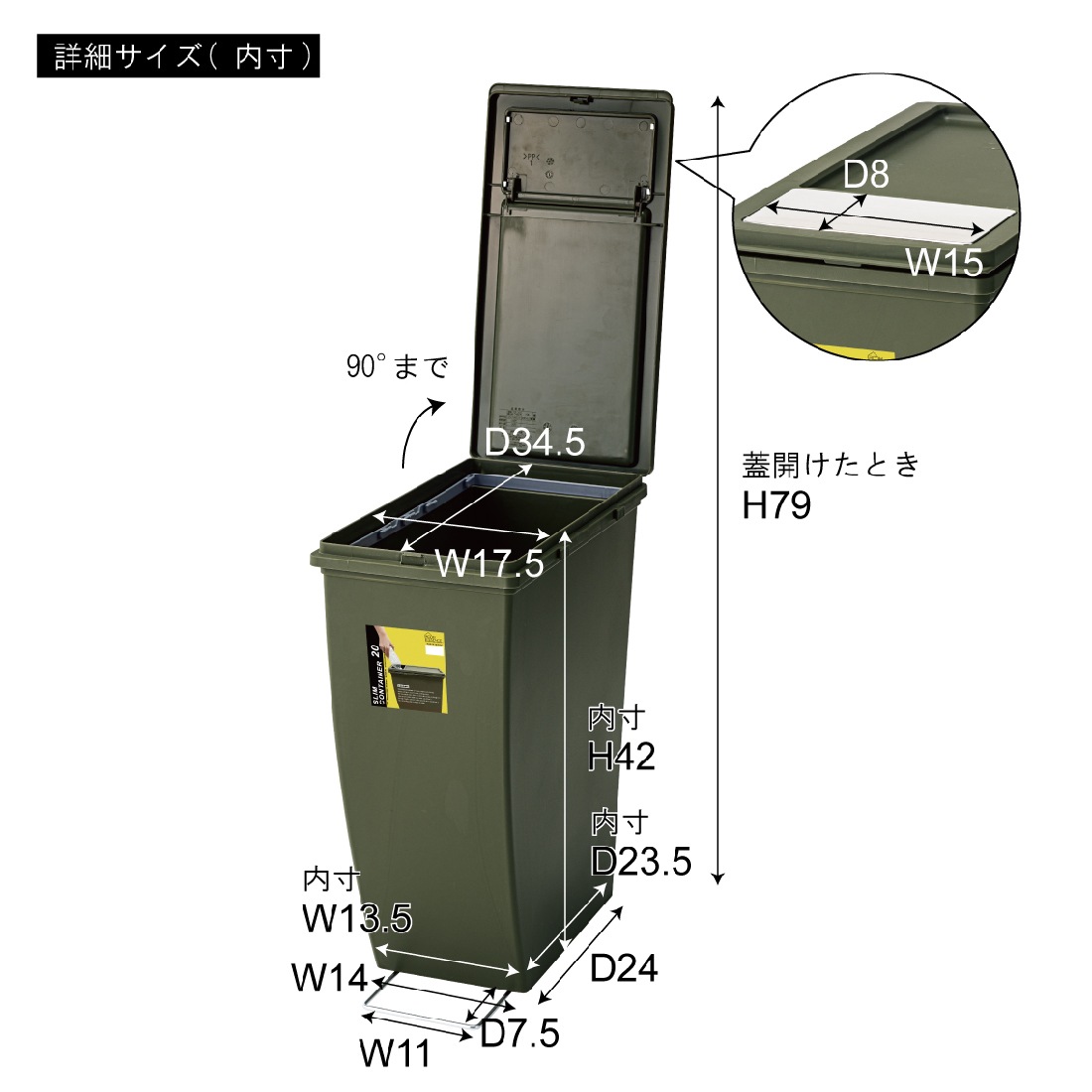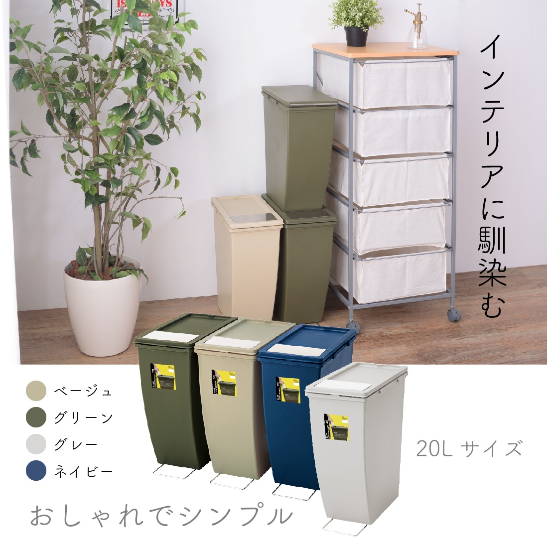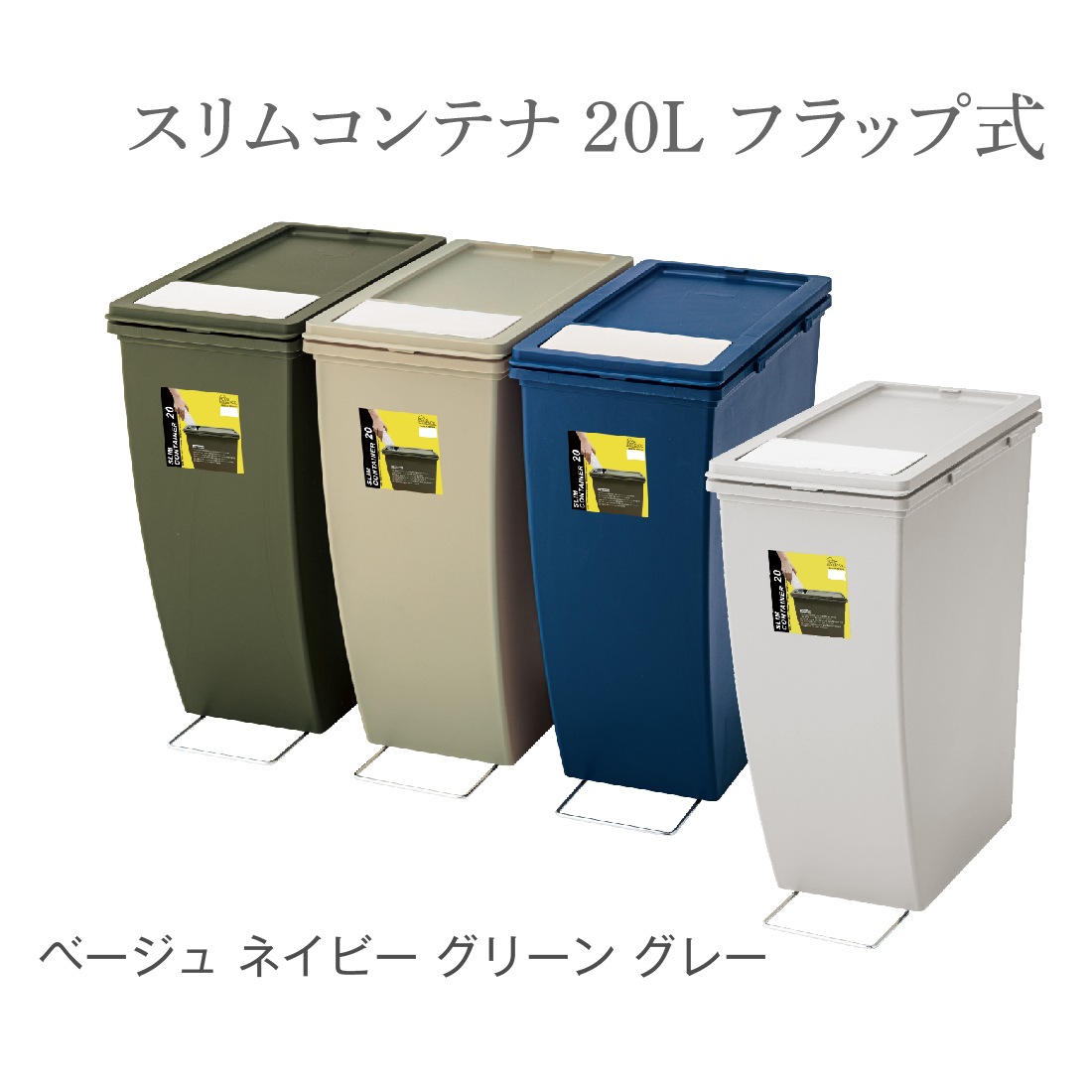 スリムコンテナ 20L フラップ式 おしゃれ ダストボックス パッキン付き 袋止め付き ベージュ ネイビー グリーン グレー 東谷 LFS-847BE / LFS-847GR / LFS-847GY / LFS-847NV