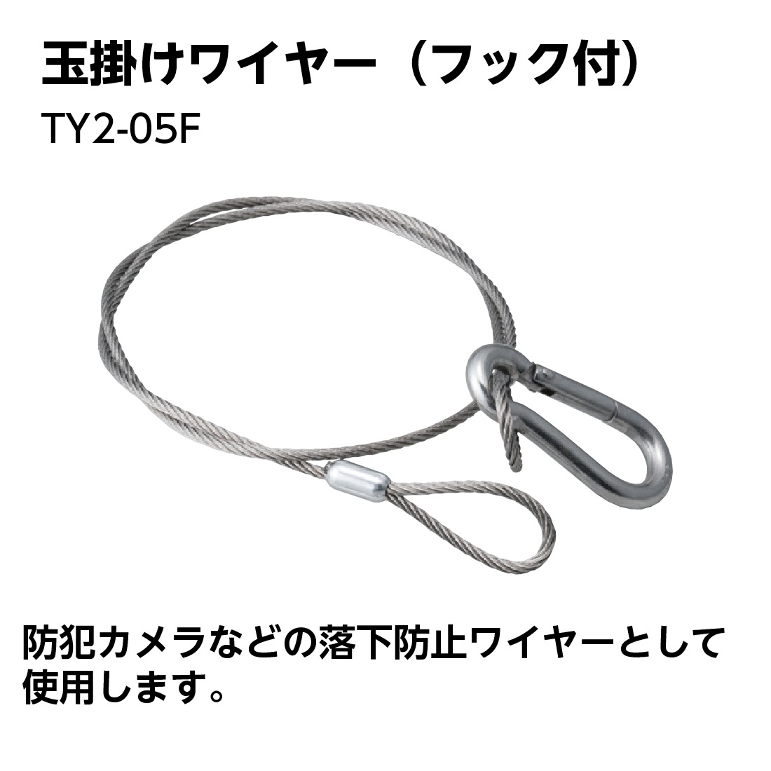 TY2-05F 玉掛けワイヤー フック付 防犯カメラなどの落下防止ワイヤー
