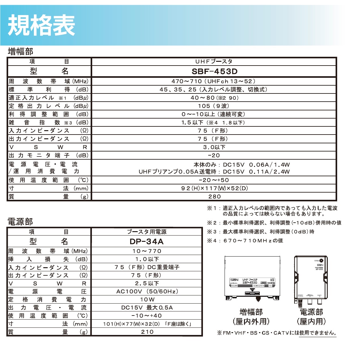 【即配】サン電子 SBF-453D ブースター|電源分離型 利得切換式 UHFブースタ