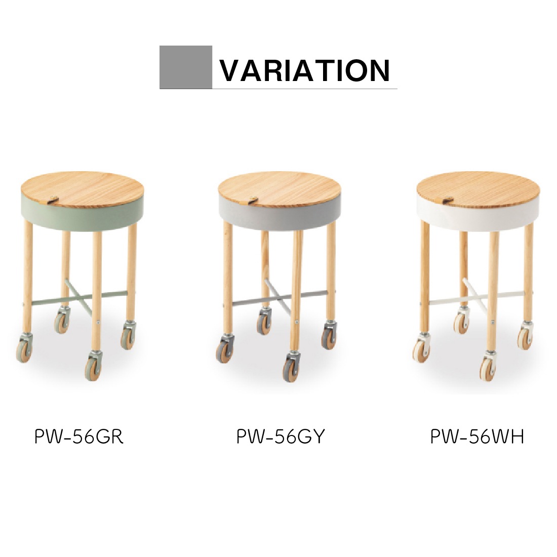 サイドテーブル PW-56GR テーブル おしゃれ 北欧 キャスター キャスター付き 収納 取っ手付き 木製 スチール ナイトテーブル ワゴン ベッドサイド ソファサイド ソファーサイド リビング 寝室 新生活 グリーン グレー ホワイト 東谷