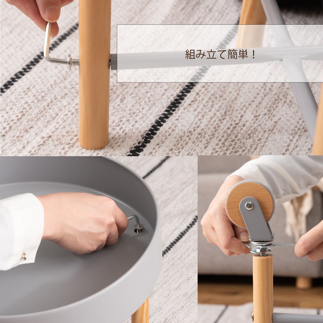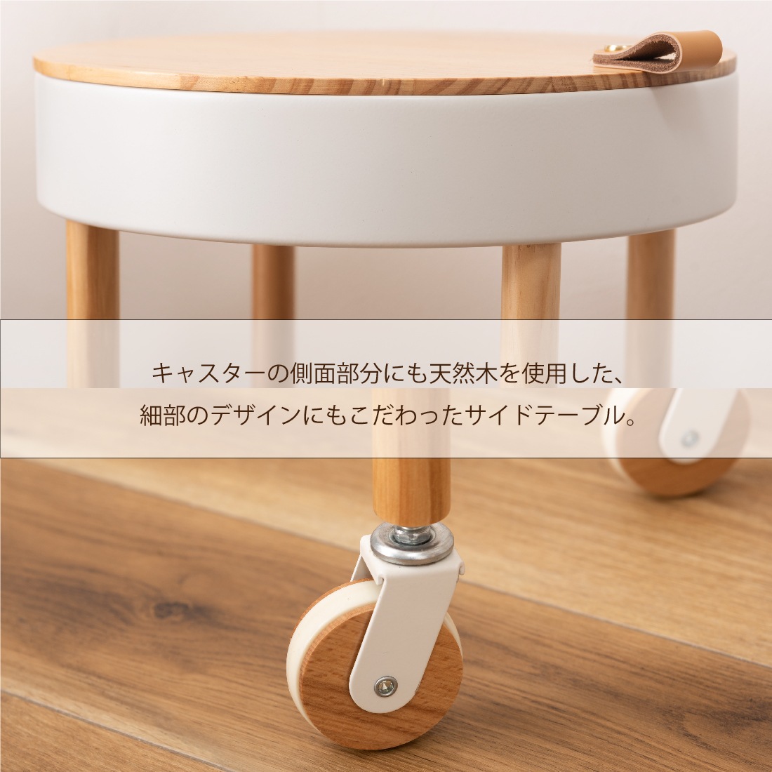 ●キャスターの側面部分にも天然木を使用した、細部のデザインにもこだわったサイドテーブル。