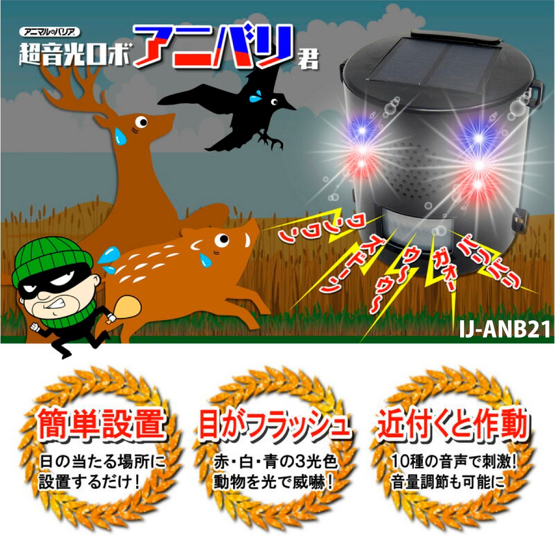 超音光ロボ アニバリ君 IJ-ANB21 害獣撃退 動物撃退 猪撃退 鹿撃退 犬撃退 猫撃退 猿撃退 鳥撃退 アニマルバリア インテリムジャパン