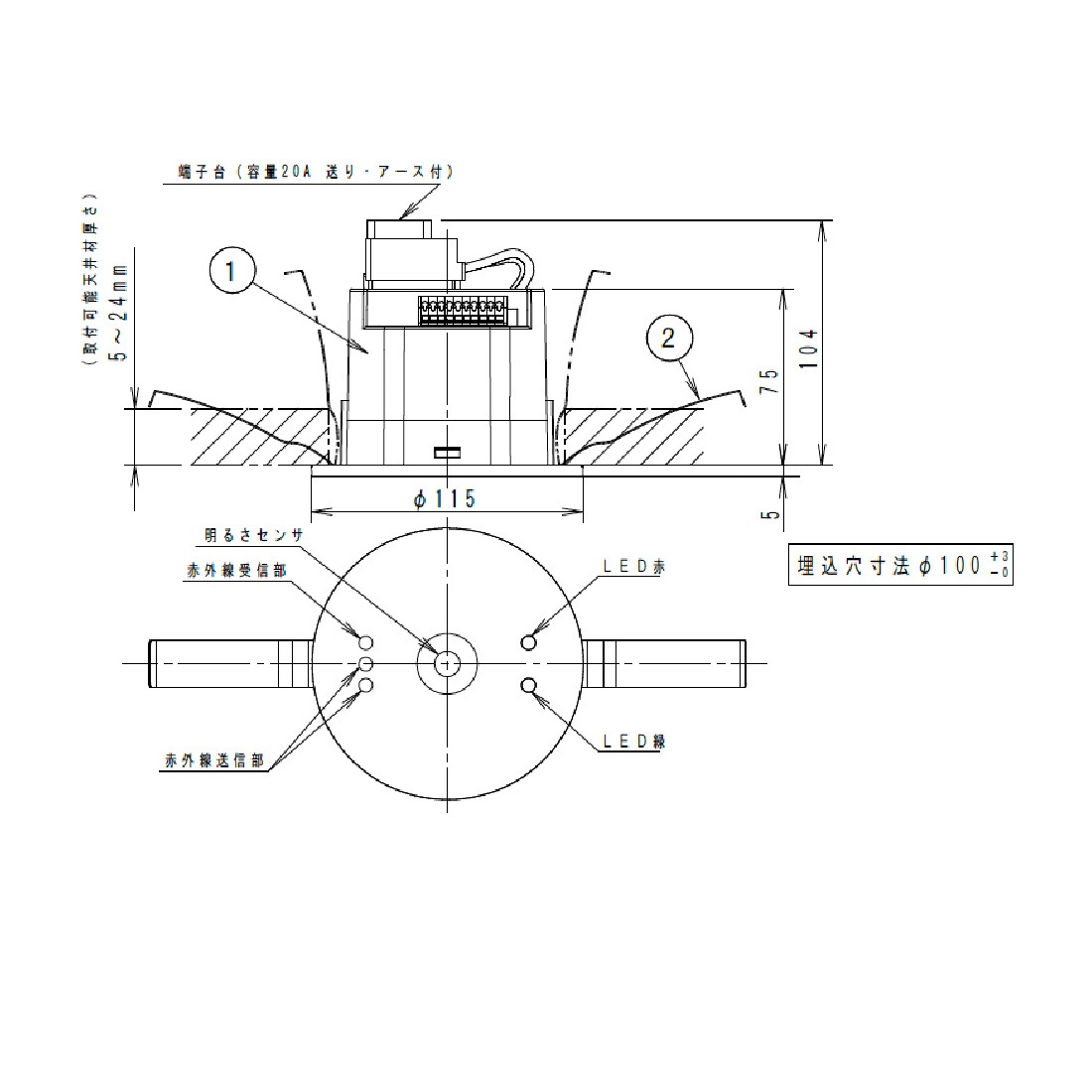 天井埋込型、埋込穴φ100、Aタイプ