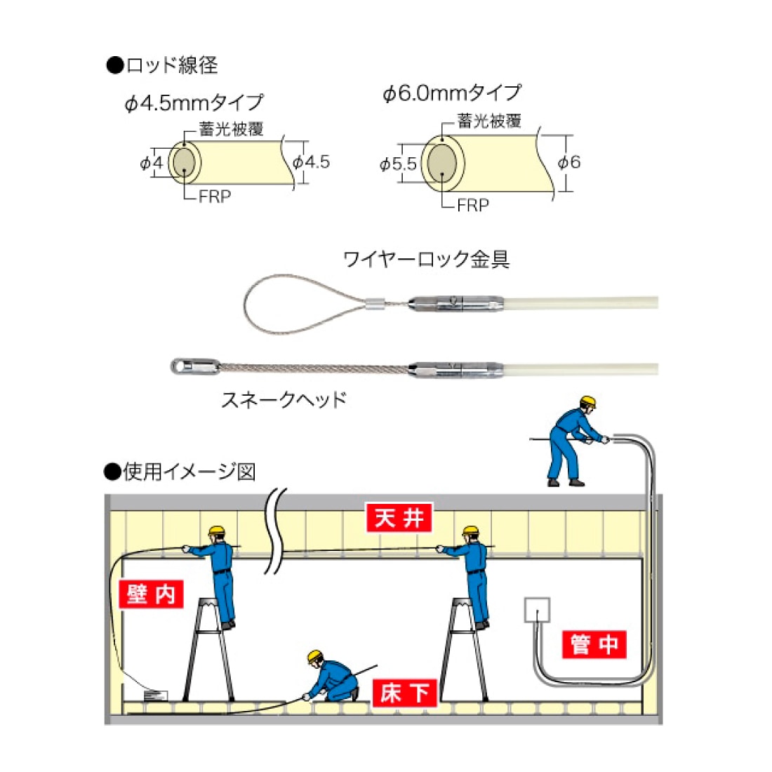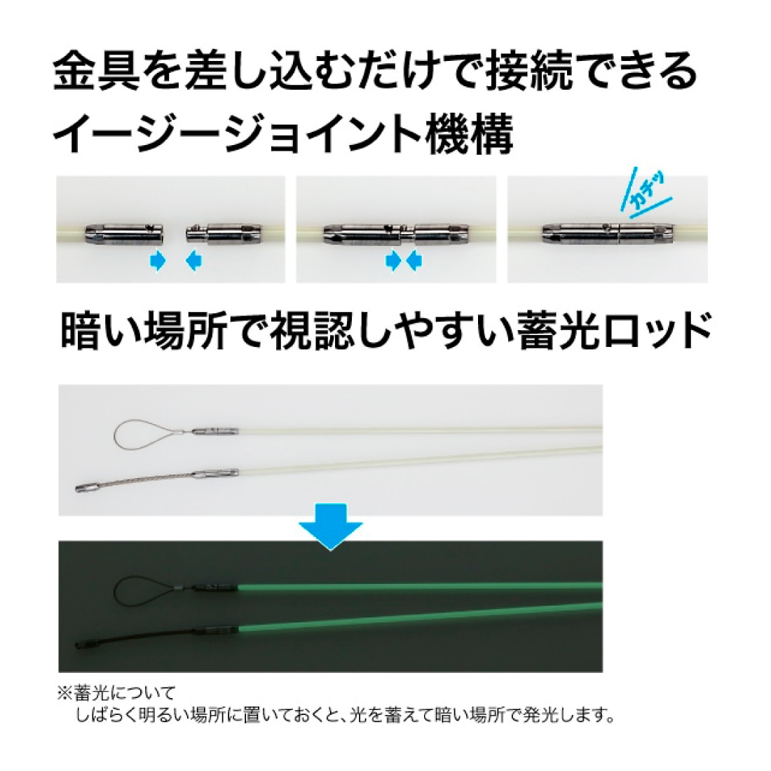 ロッド:FRP+蓄光被覆、金具:スチール(快削鋼)