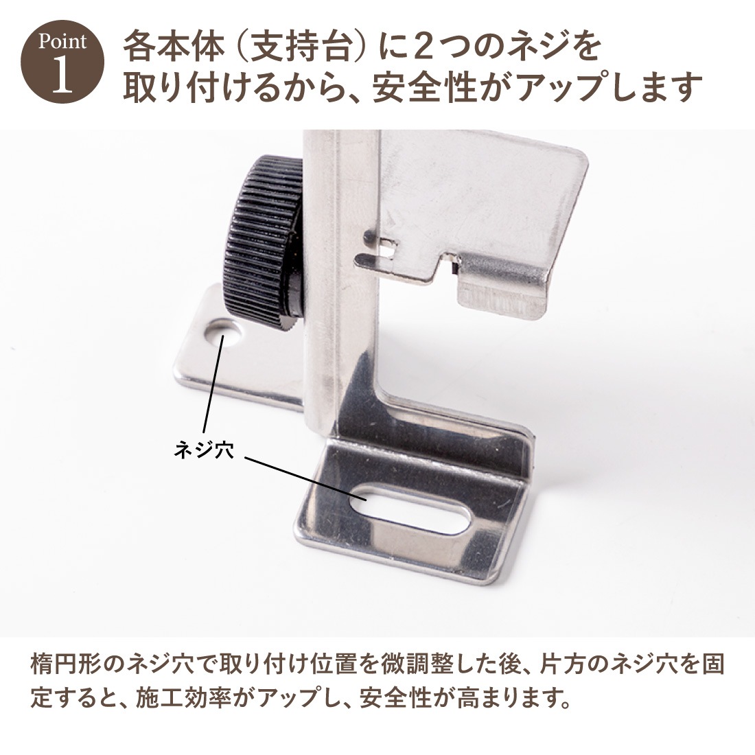 各本体にネジ2個を止める仕様で、確実な固定が可能、安定性が向上します。