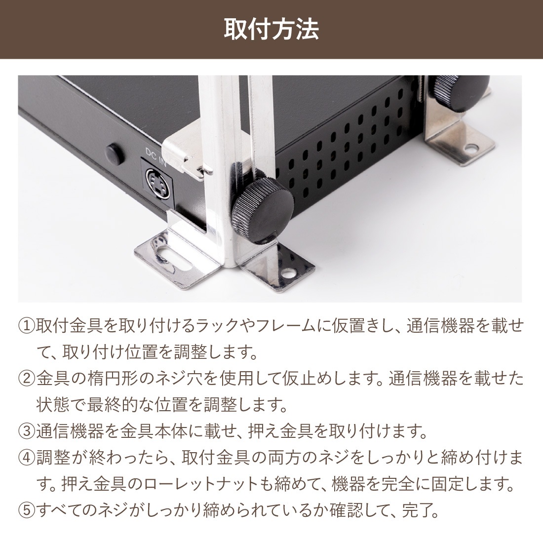 通信機器用マウントブラケット 通信機器用固定金具 2U用 33~105mm調整 取付ネジ付