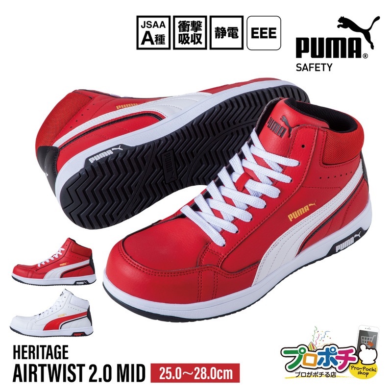 【即配】安全靴 PUMA SAFETY ヘリテイジ エアツイスト2.0 ミッド (HERITAGE AIRTWIST 2.0 MID) レースタイプ ミドルカット セーフティシューズ 作業靴 おしゃれ