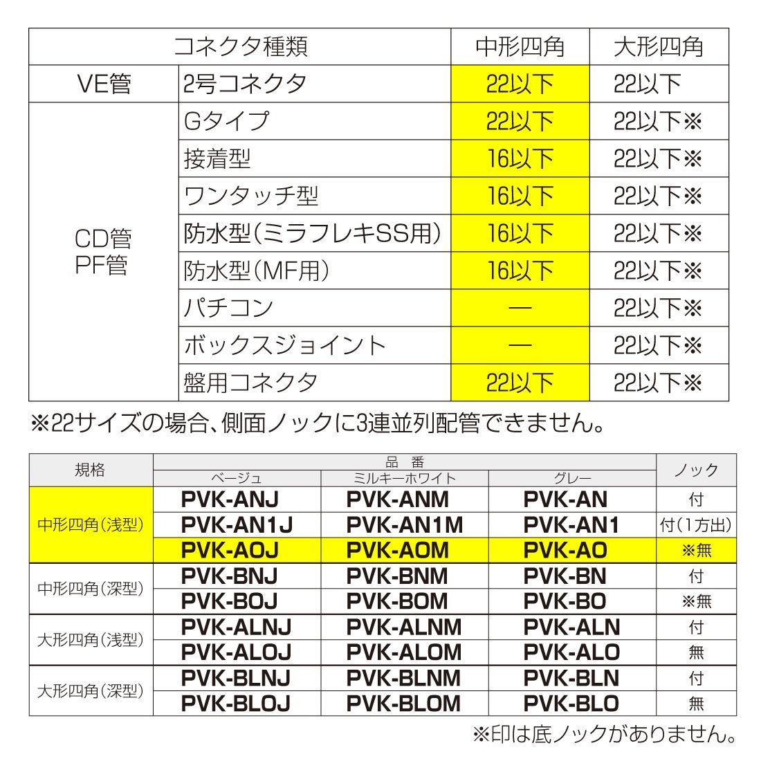 【取寄品】 PVKボックス 中形四角 浅型 PVK-AOJ/ベージュ PVK-AOM/ミルキーホワイト PVK-AO/グレー ノック無 50個入 未来工業