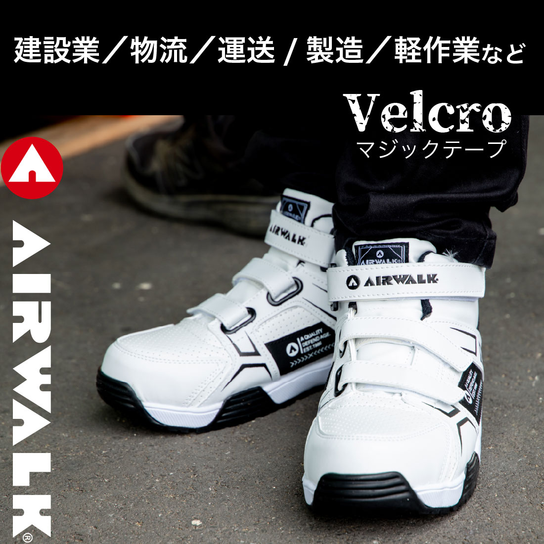 【即配】 安全靴 ベルトライン AW-970/ブラック AW-980/ホワイト 3本ベルト 耐滑 通気 軽量 樹脂先芯 作業靴 マジックテープ AIRWALK/エアウォーク