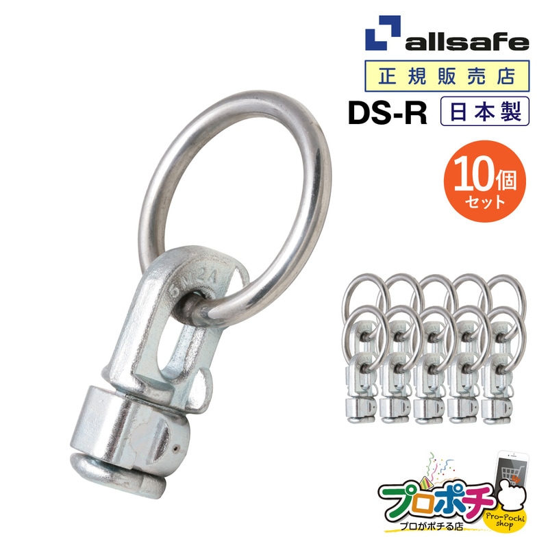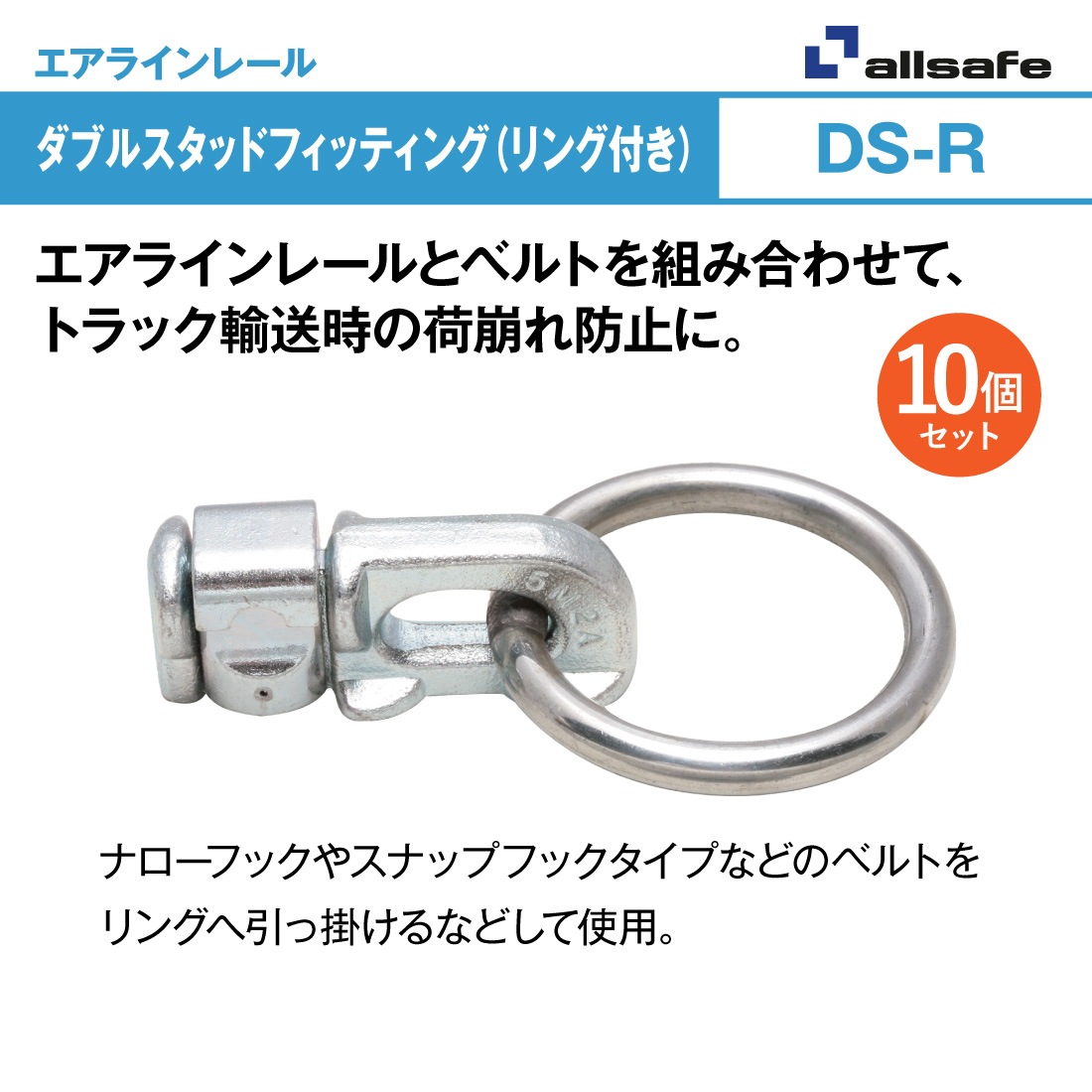 オールセーフ ダブルスタッドフィッティング(リング付き)10個 DS-R [エアラインレール用端末金具] allsafe【メーカー直送】