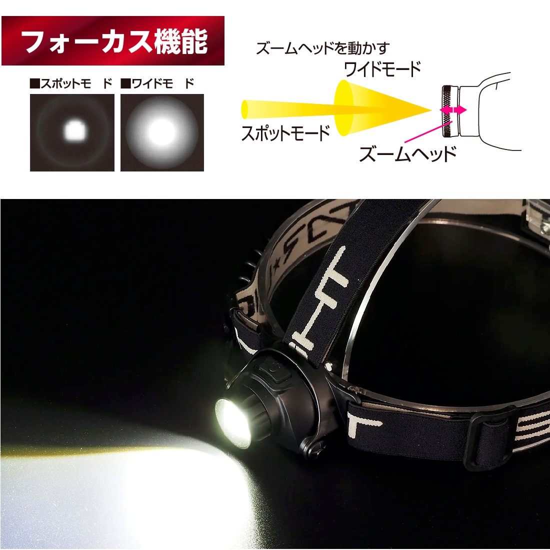 ■ヘッド角度調整機能/ワイドモード・スポットモード