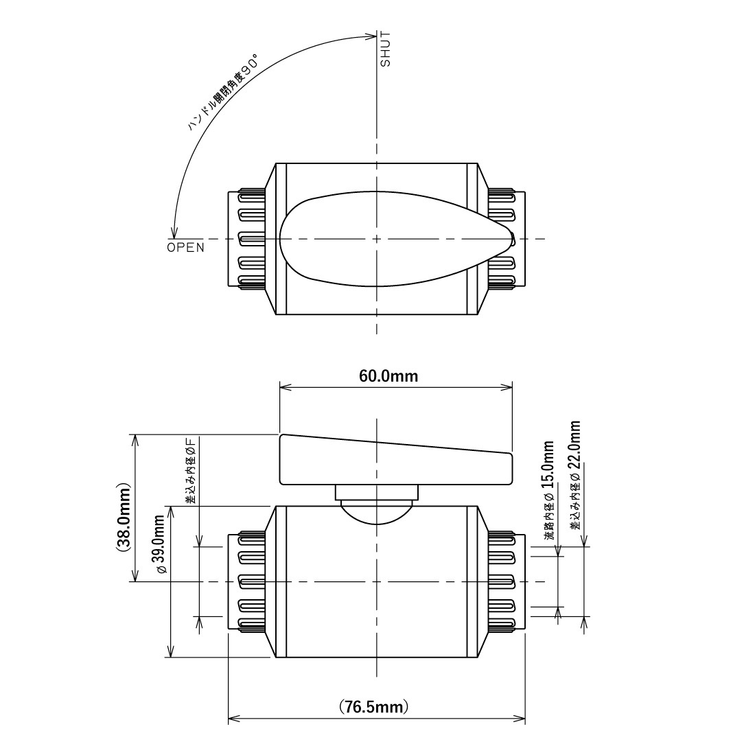 PVCボールバルブ(接着式)呼径13用