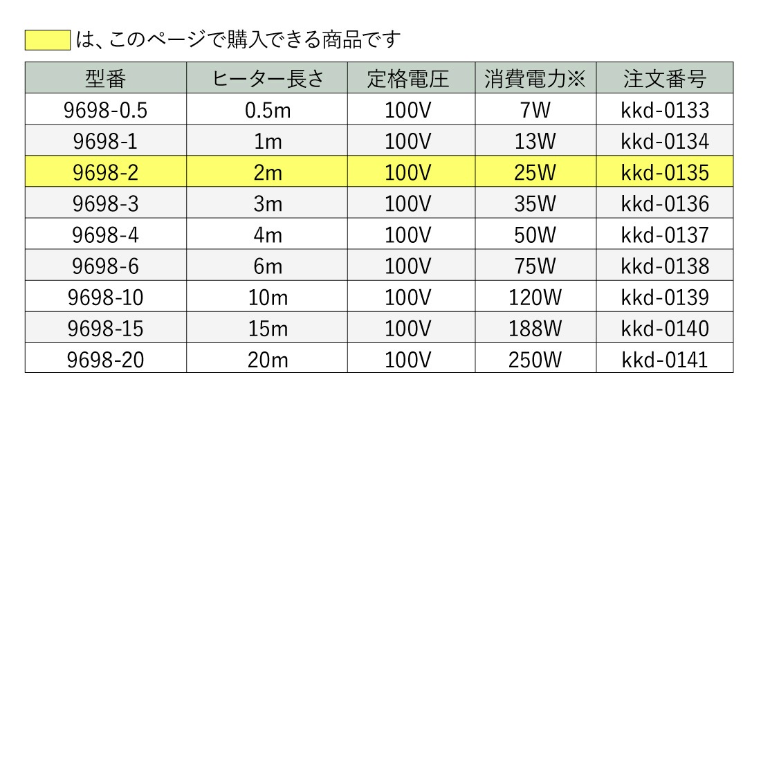 9698-2 水道凍結防止帯(給湯・給水管兼用) 保温テープ付 2m カクダイ/KAKUDAI