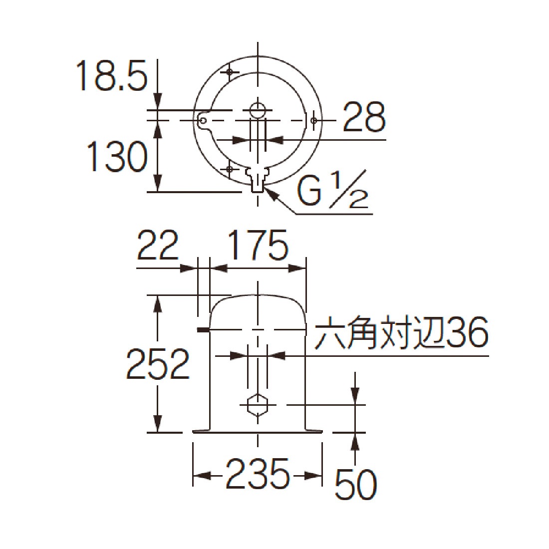 呼13の散水栓が取り付けられ、盗水対策として南京錠(別売)も取り付け可能。