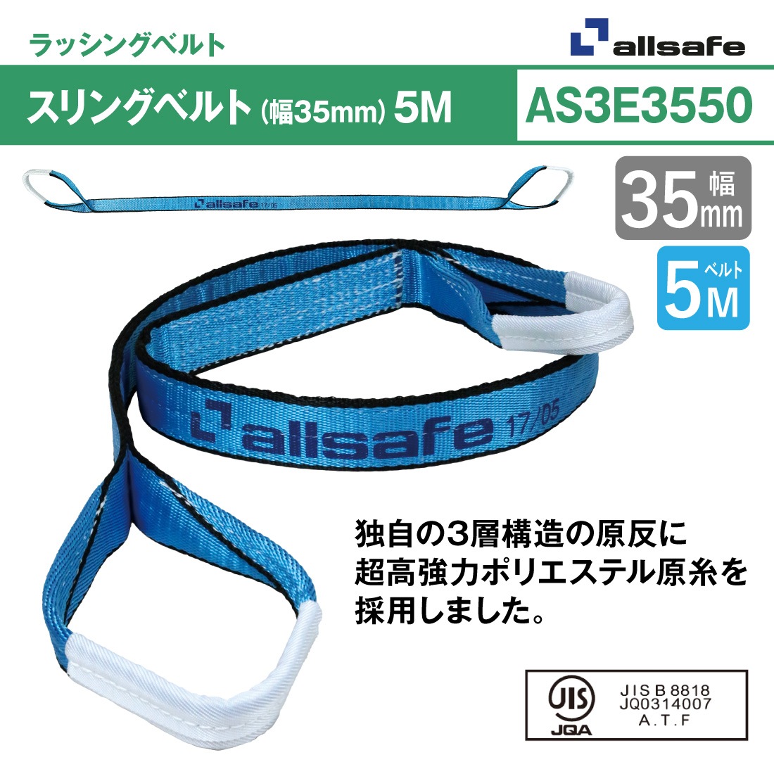 オールセーフ スリングベルト2本セット 長さ5m 幅35mm AS3E3550 allsafe【メーカー直送】