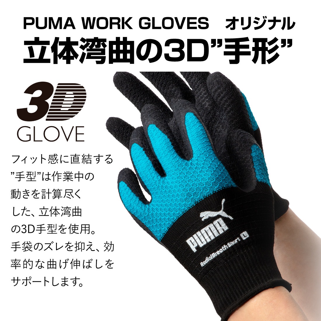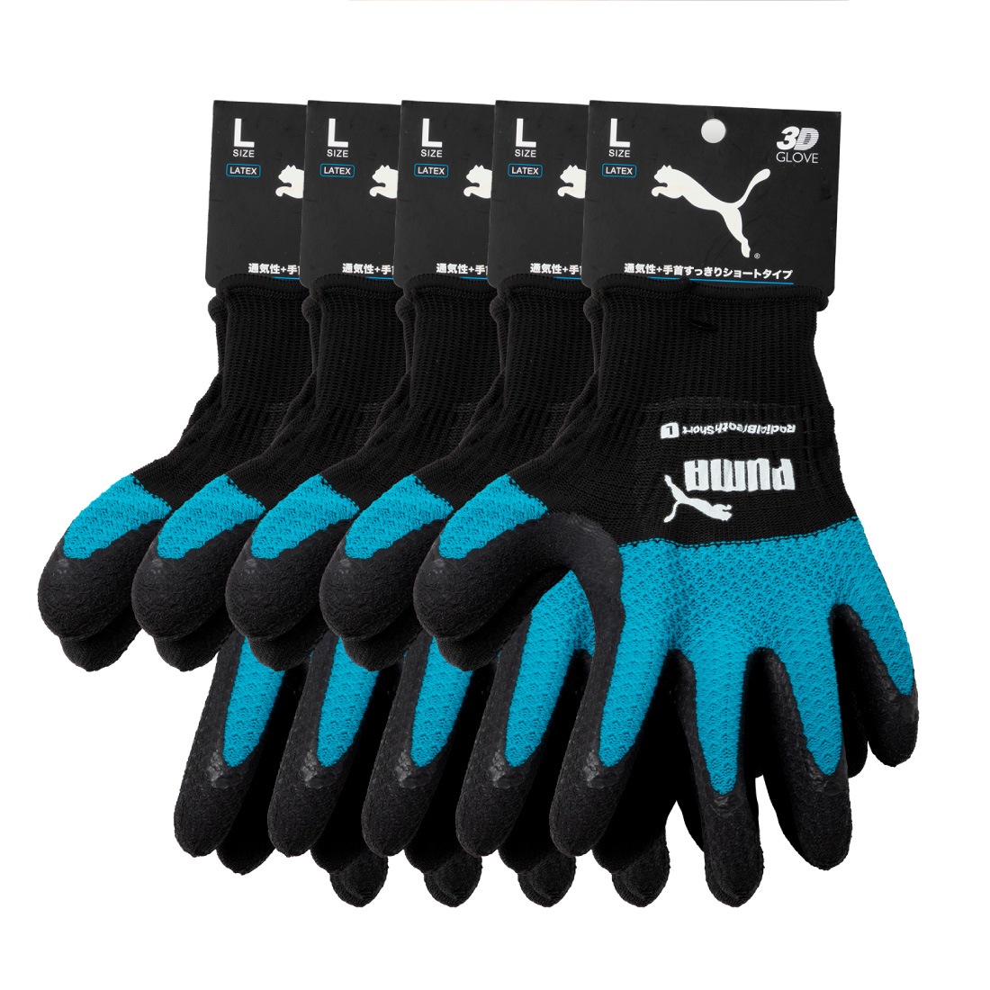 【取寄品】 PG-1335 ラジアルブレス ショート丈 5双セット 蒸れにくい 天然ゴムコーティング手袋 PUMA